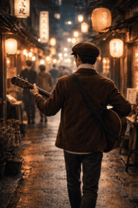 昭和25~40年代前半くらい、日本は流しのお兄さん、おじさんを見かけることがありました。まだカラオケがないころです。カラオケが登場して、徐々に、その姿は消えていきました。