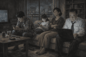 しかし、私たちは本当にそれを心から望み、それこそが正しい道だと、おのおのが自分で考えて進んできた道でしょうか。私たちは、考える前に、すでに便利さと引き換えにして、共同体の安心・文化的土壌・家族観・地域の気配といった「人が人でいるための足場」を失ってきたのです。